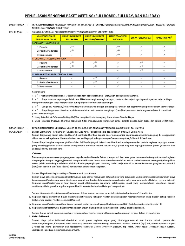 Cakupan Komponen Standar Biaya Paket Meeting Halfday Fullday Fullboard Auditor Berbagi